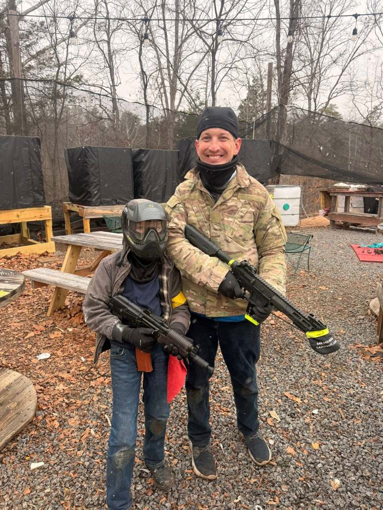 It was a Sunday afternoon with light snow, but we had a great time army-crawling through the woods, planning tactics, and executing attacks against our opponents.